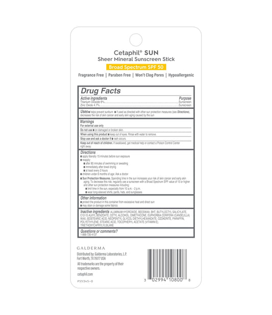 Cetaphil Sheer Mineral Sunscreen Stick Spf 50