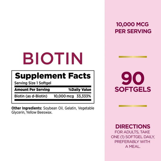 Nature's Bounty - Biotin 10,000mcg Softgels, 90 Ct