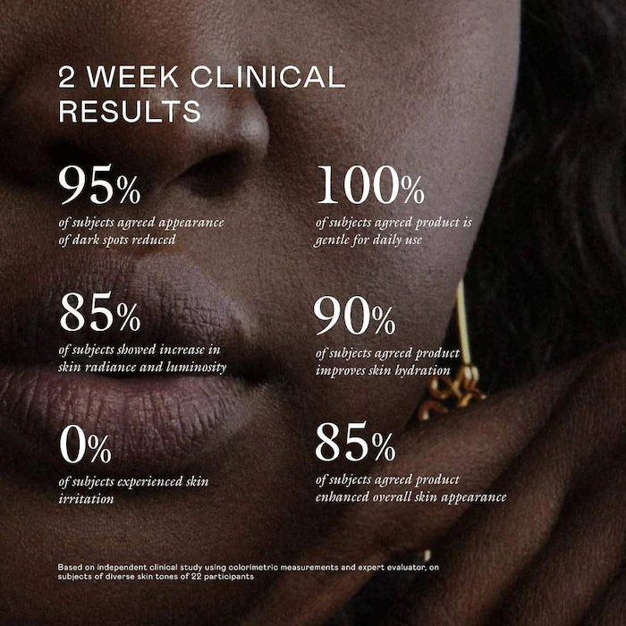 Qué es: Un suero sin fragancia, formulado exclusivamente para pieles de color, que reduce rápidamente las manchas oscuras visibles, la hiperpigmentación y las marcas posteriores al acné al tiempo que otorga un brillo de aspecto saludable.